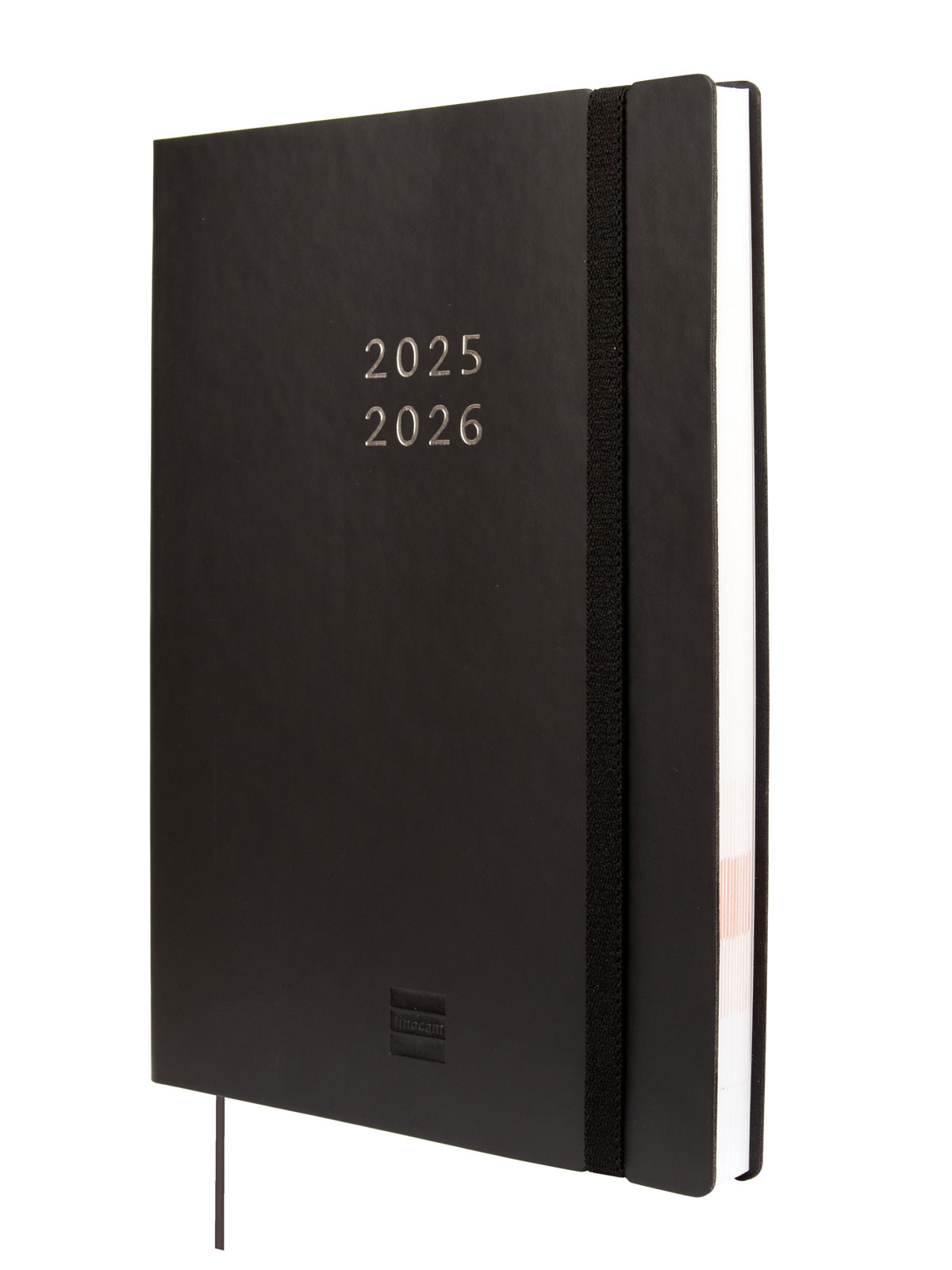 Agenda enquadernada de tapa flexible de 18 mesos: inici el juliol de 2025 i finalització el desembre de 2026. Perfecta per planificar a llarg termini. Cobertes flexibles molt agradables al tacte i perfecta obertura per escriure-hi còmodament. Amb cinta punt i goma elàstica. Les cantonades són microperforades per poder localitzar ràpidament la setmana en curs. Per facilitar la localització de cada mes, l'anualitat ofereix un indicador al lateral dret de les pàgines. Agenda amb informació d'interès a l'anualitat i altres continguts extra.