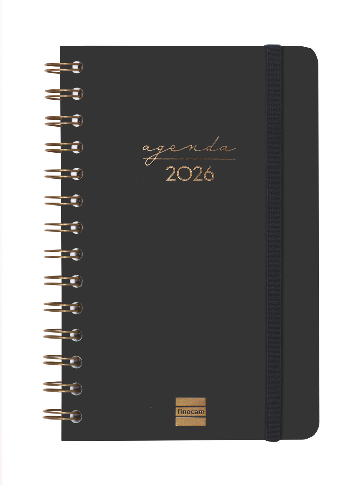 Agenda d'espiral de tapa dura de cartró folrat amb pel·liculat mat antiratllades. Disseny elegant i sofisticat amb detalls estampats metal·litzats. Ideal per a ús personal i/o professional. Amb goma elàstica i cantonades microperforades per localitzar ràpidament el dia/setmana en curs. Incorpora un set d'adhesius temàtics. El disseny interior és net i fàcil, amb espai suficient per organitzar els teus projectes, tasques i compromisos. Conté informació d'interès a l'anualitat i altres continguts extra orientats a l'organizació personal.