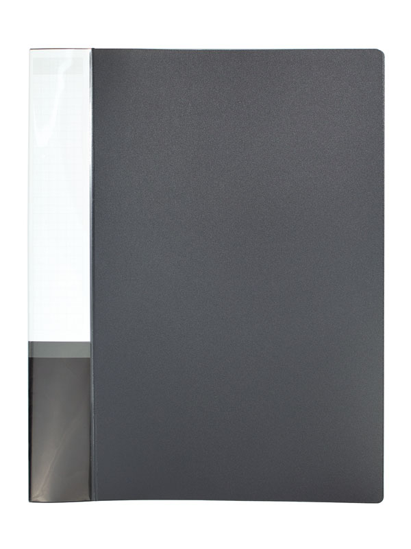 Dossier per petites presentacions escolars o de feina. Llom extraïble i referenciable per identificar-lo. El passador permet l'arxiu de fulls amb dos forats.