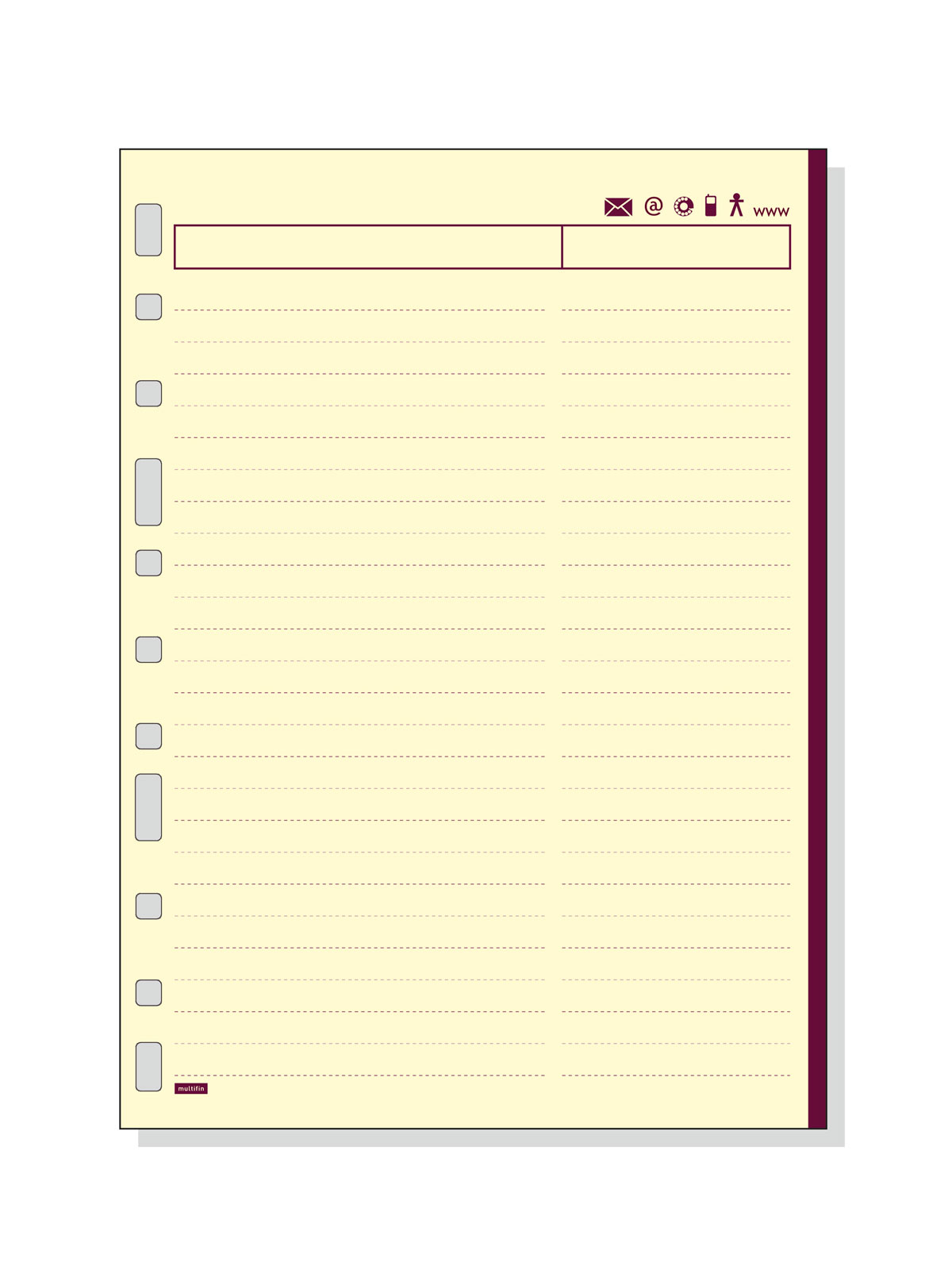 Recanvi de 26 fulls de color crema per adreces i telèfons. Alt gramatge.