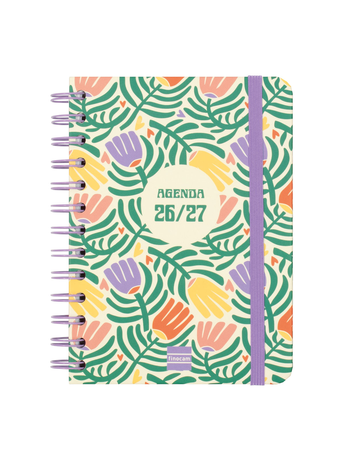 Agenda de curso escolar para estudiantes y adultos que se organizan de septiembre a agosto. Espiral doble metálica y tapas de cartón forrado con diseños de portada variados y en tendencia. Cierre con goma elástica. La agenda está impresa a todo color y está equipada con adhesivos temáticos para personalizar su interior. Las esquinas son microperforadas para poder localizar rápidamente el día/semana en curso. Agenda con información de interés en la anualidad y otros contenidos extra útiles y prácticos.