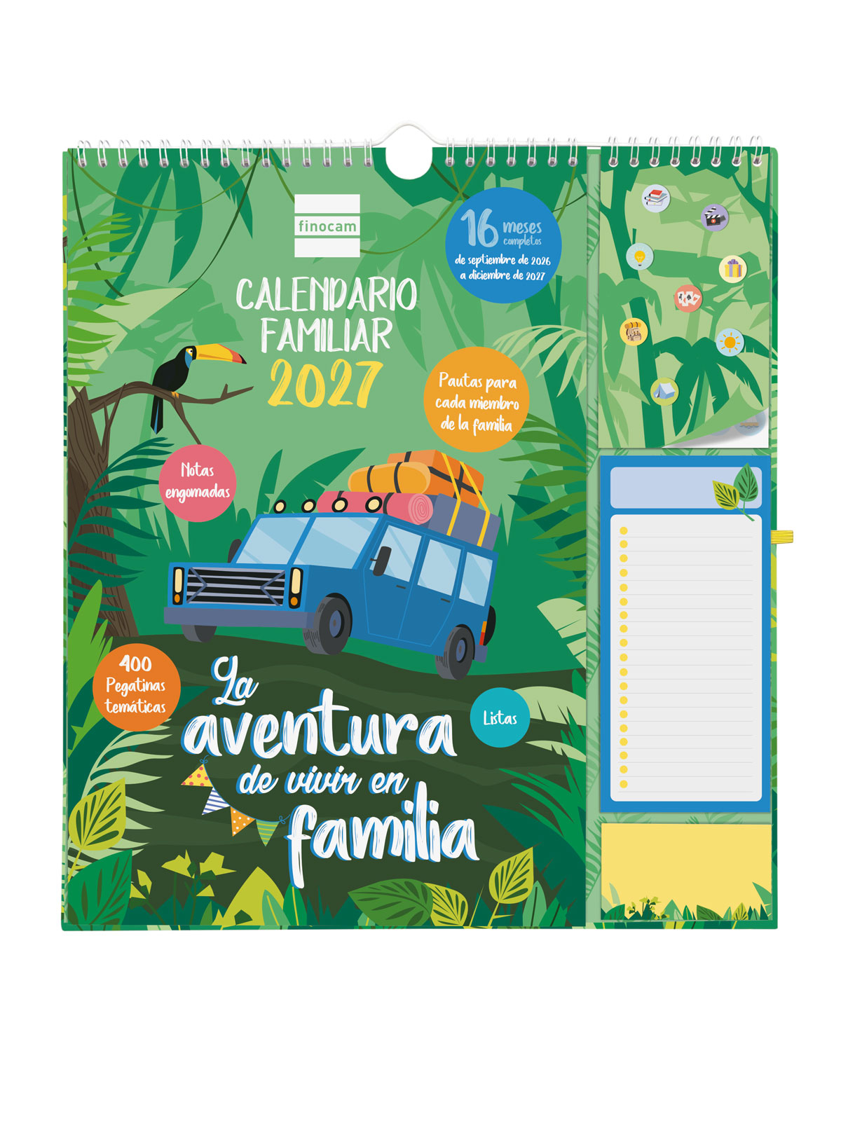 Calendario de pared encuadernado en espiral y con colgador. Inicio en septiembre de 2026 y finalización en diciembre de 2027 (16 meses). Perfecto para planificar el año entero desde la vuelta de las vacaciones de verano. Contiene información útil y de interés y todos los indispensables para una buena organización: calendarios, plantilla de horario recortable, pegatinas, bloc de listas y set de pósits. Además, está equipado con una anilla portabolígrafo para tener siempre a mano un elemento de escritura (bolígrafo no incluido). Casillas diarias con pauta. Contenido temático en cada mes y espacio para notas. Con pegatinas temáticas encuadernadas en el mismo espiral para tenerlas siempre a mano y decorar el calendario sin que se pierdan. Además, gracias a los pósits tendrás, en todo momento, un sitio donde anotar los recordatorios. ¡La organización perfecta para el hogar!