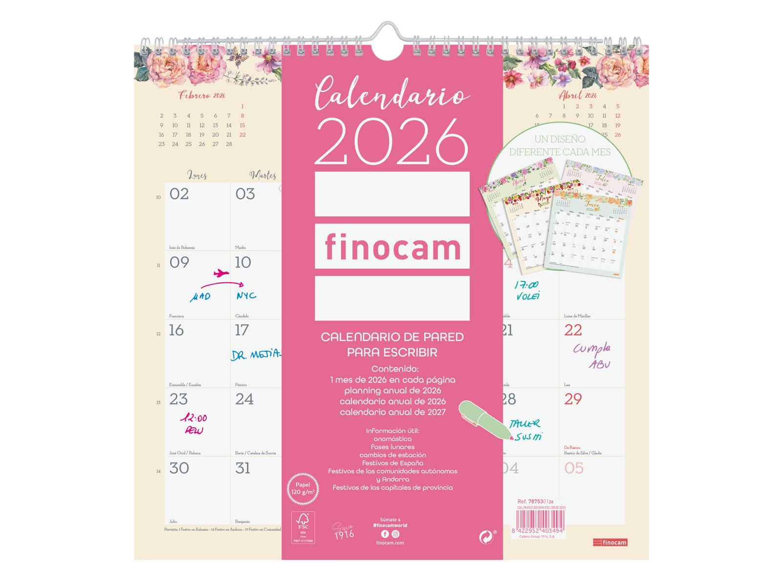 Calendario anual de pared encuadernado con espiral doble y con colgador. Cada mes con un diseño diferente. Contiene información útil y de interés, espacio diario para anotaciones y mes anterior y posterior en cada página. Ideal para decorar tu hogar o espacio de trabajo y para planificar y recordar todos los compromisos del año.