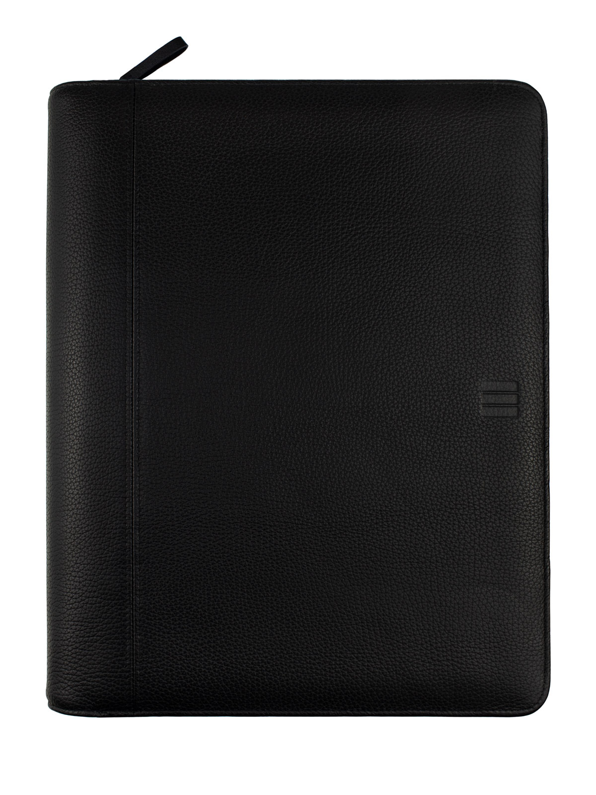 Portadocumentos de mano de piel equipado con Bloc de notas. Cierre con cremallera de alta calidad, con carro metálico y tirador de piel. Diseño profesional y elegante, perfecto para profesionales que se desplazan habitualmente y necesitan disponer en un único lugar todos los elementos para trabajar. Gracias al bloc de notas que incorpora, se pueden tomar anotaciones en cualquier momento. El bolsillo interior con fuelle y cierre permite ubicar una tablet de hasta 10" o bien documentos DIN A4 y mantenerlos seguros. Este portadocumentos incorpora dos anillas portabolígrafos para tener siempre a mano dos elementos de escritura y compartimentos de goma elástica para guardar otros objetos como tarjetas, móvil, memoria USB, auriculares u otros indispensables. Detalles de la marca en el interior y en el exterior. El material es piel de vacuno de primera calidad, hecho que lo convierte en un artículo de alta gama. Diseñado para un uso intensivo y vida duradera. Este artículo se presenta en caja de regalo, siendo óptimo como obsequio de categoría.
