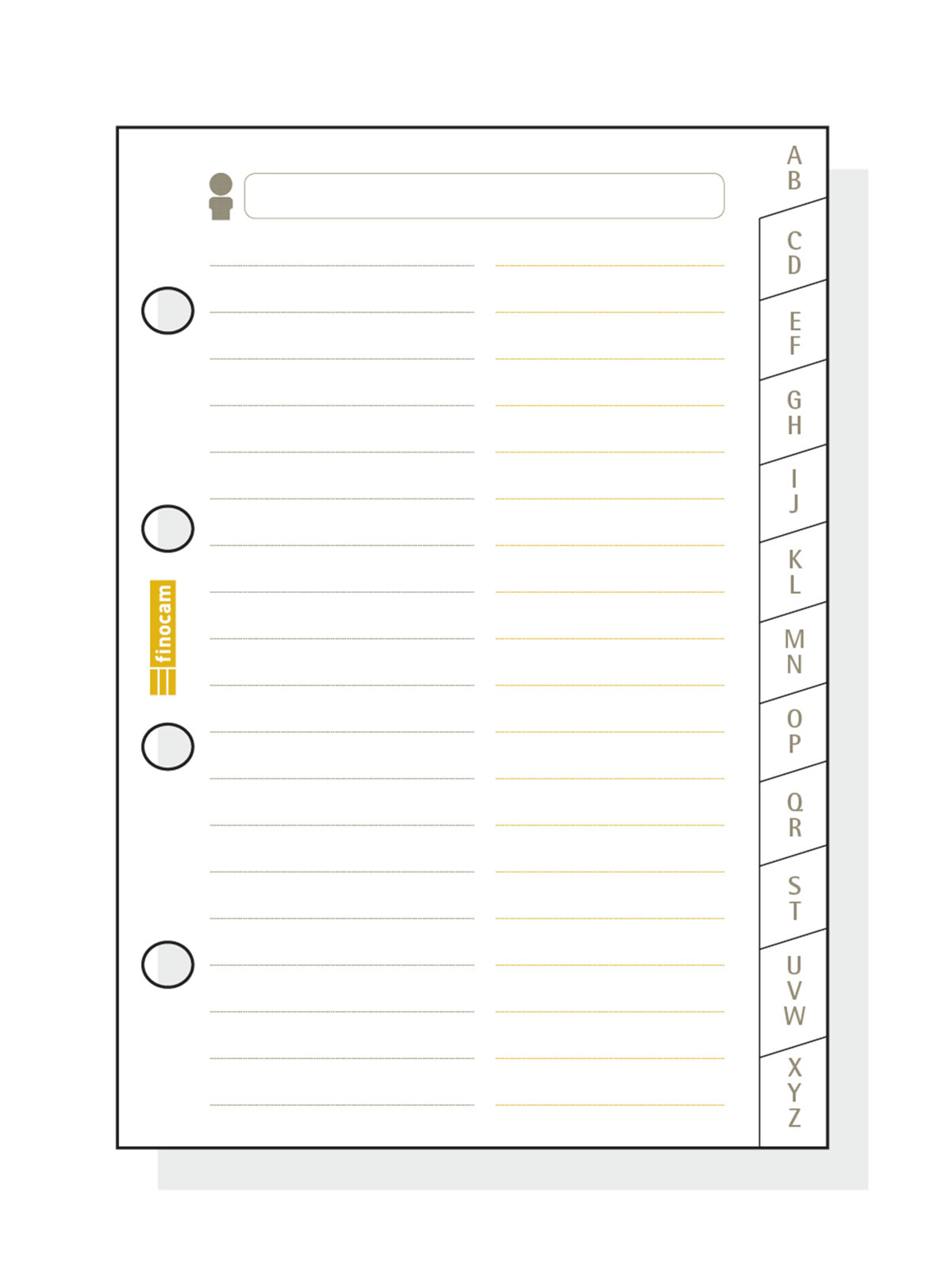 Índice alfabético de cartulina con 12 pestañas para las agendas de anillas Finocam Classic.