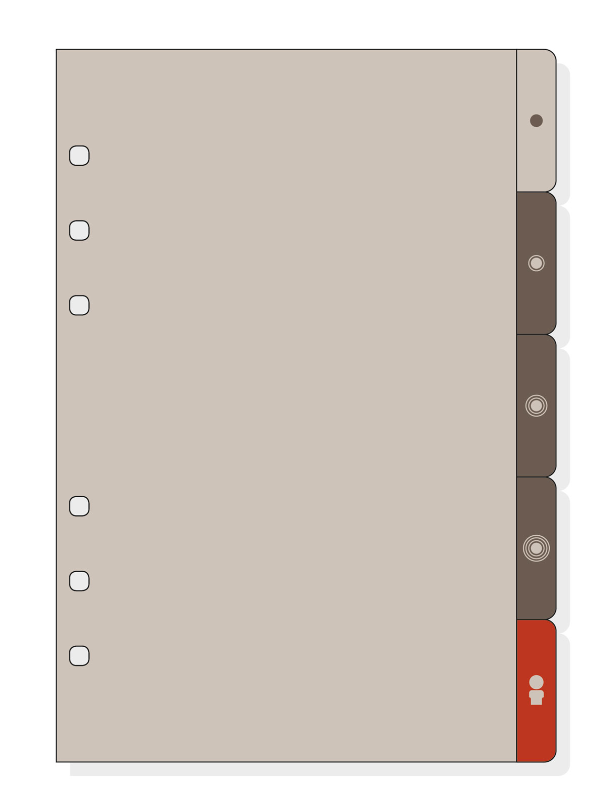 Juego de 5 separadores laterales para agendas de anillas Finocam Open.