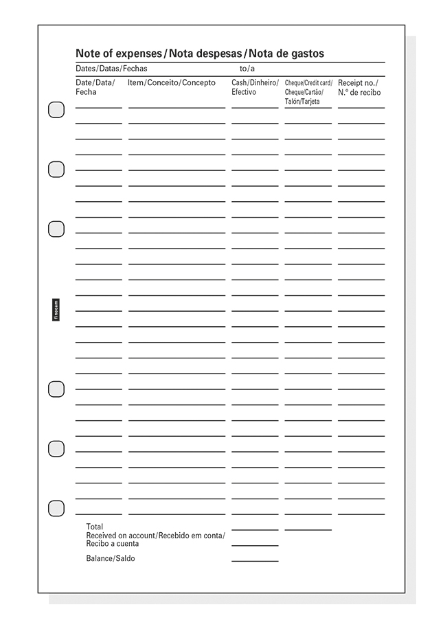 6 sobres Nota de gastos para agendas de anillas Finocam Open.