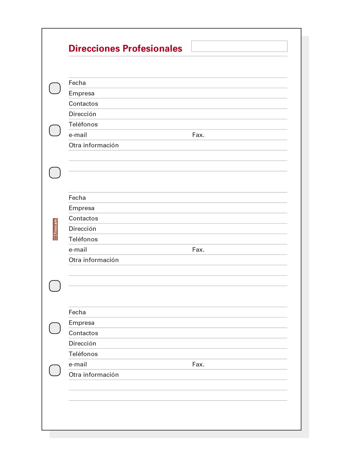 Recambio Direcciones profesionales para agendas de anillas Finocam Open.